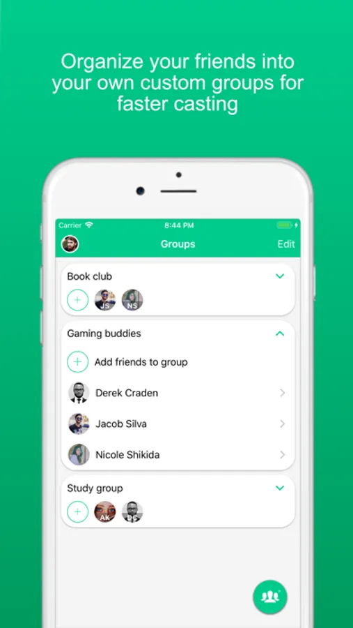 - Groups - Organize friends into custom groups for faster selection when creating a Cast or Event.