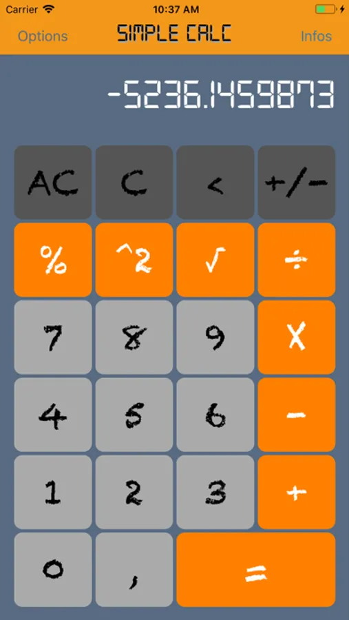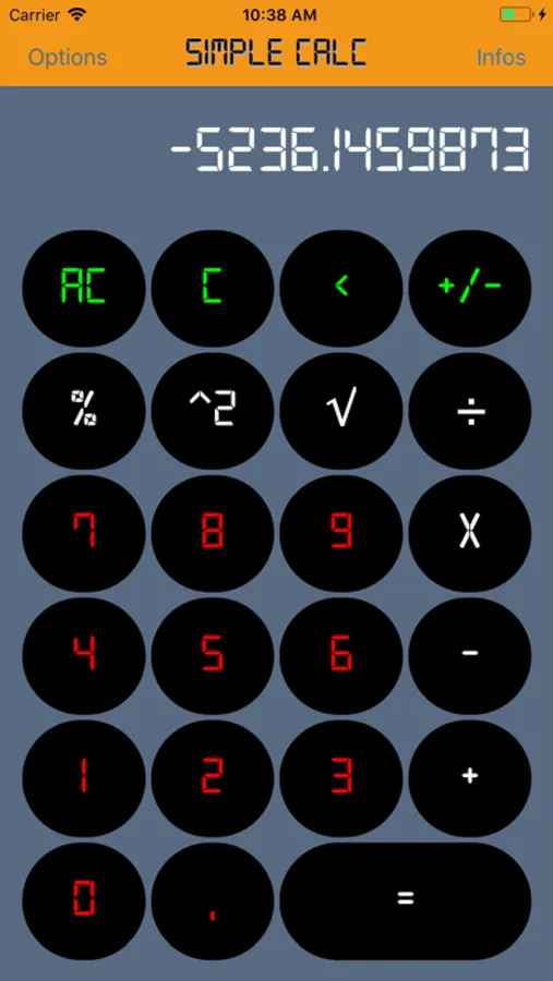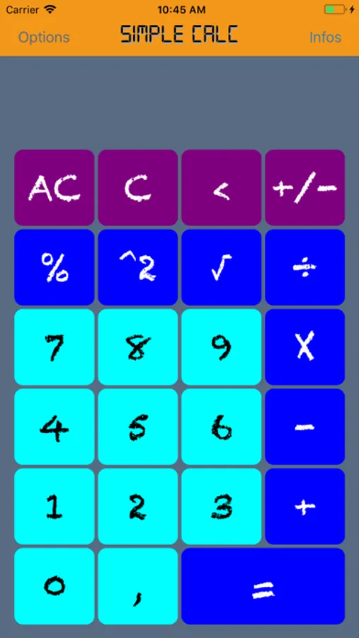 En plus des opérateurs simples comme l'addition, la soustraction, la multiplication et la division nous avons aussi implémenté des calculs de pourcentage, la gestion d'effacement (le dernier chiffre entré "C", tous les calculs "AC" mais aussi l'effacement des digit affichés un par un avec la touche ">".
