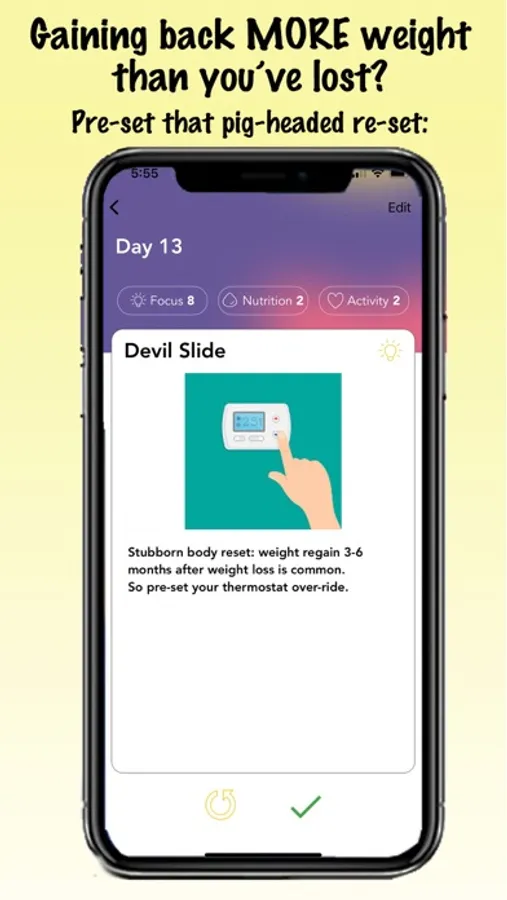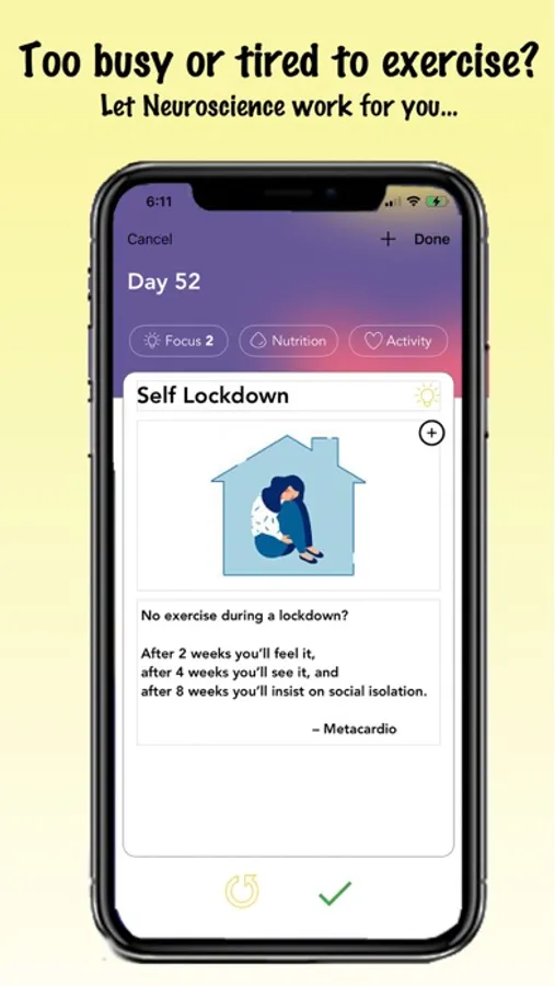 A sensible lifestyle coaching app to build lifelong wellness habits using ordinary means as part of your usual routines, in only minutes a day over 12 delightful weeks. Anyone age 18 and over can do it.