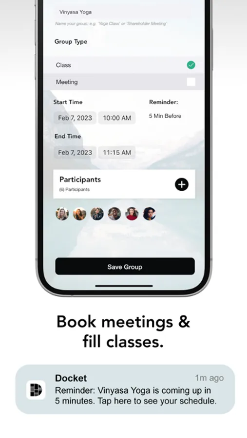 Docket provides a side-by-side view of your client roster and its easy-to-use calendar for simple and efficient appointment management. Use Docket to schedule clients, classes & meetings!