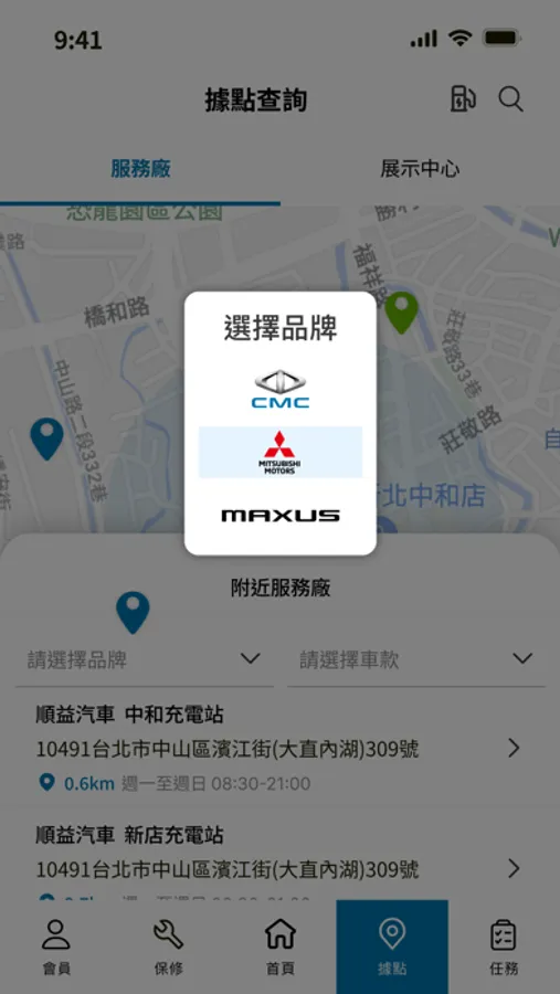 10.導航和撥打電話給鄰近展示中心、服務廠。