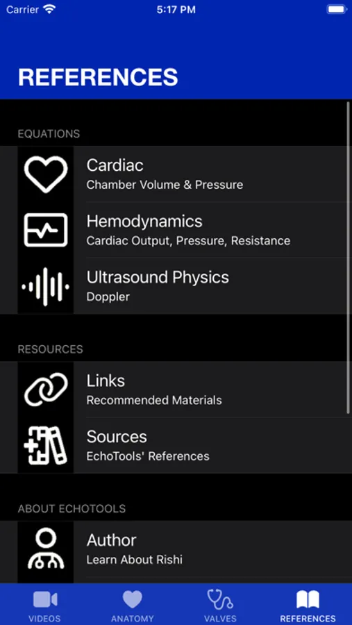 EchoTools is a free iOS ultrasonography educational reference covering point-of-care ultrasound (POCUS), transthoracic echocardiography (TTE), and transesophageal echocardiography (TEE). Additionally, it contains cardiac dimensions, native/prosthetic valve measurements, and lessons ranging from interventional procedures to mechanical circulatory support (MCS).