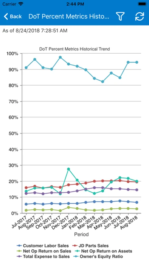 The user’s is assigned a company defined role with specific access rights through a fine grained security setup. This gives the user access to data display objects such as graphs, charts, and reports that link to enterprise information stored on the company’s servers. The data display objects are tailored to his needs. Each user has workspaces and boards that organize sub-sets of information in easy to navigate tabs. The charts and reports are collected in subject specific boards. Each chart and report have their own filtering mechanisms to pivot the data source and re-configure the chart presentation by selecting different data parameters. The different filtering pivots can link within a chart and within a board to create a coordinated view on the board.