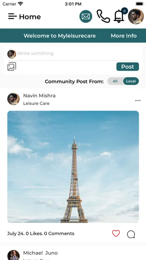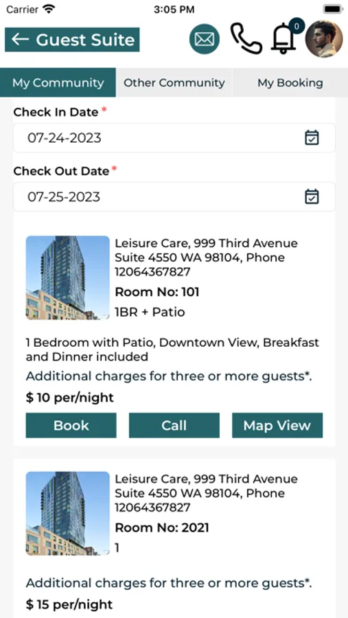 4. Directory - User can see profiles of other residents (users) in the community. He/She can call other users .