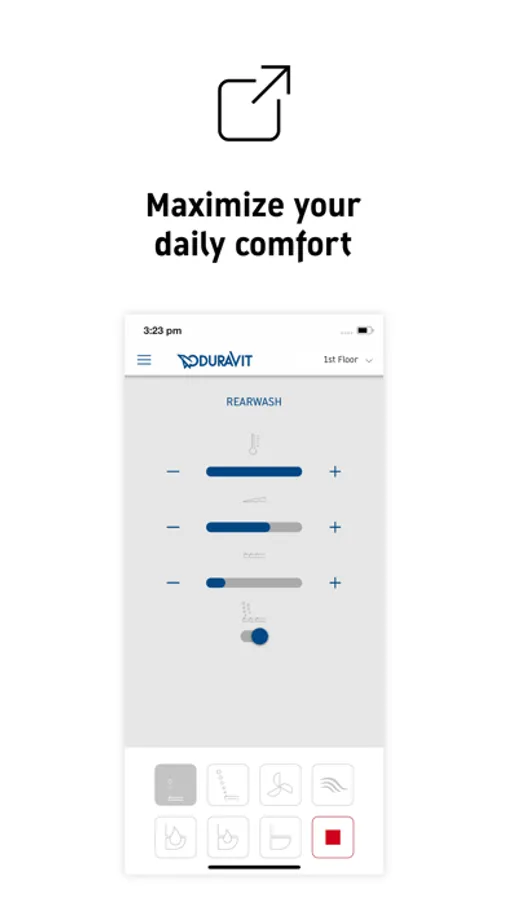 - Activate the odour extraction or trigger the flush directly in the app (requires DuraSystem® A2 actuator plate and matching DuraSystem® installation element).