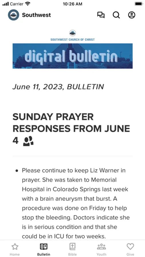 We hope this app helps you to stay connected with the Lord's body at the Southwest Church of Christ in Pueblo, CO.