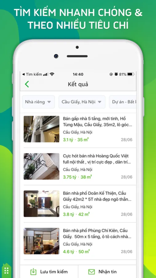 - Tìm kiếm bất động sản xung quanh vị trí của bạn