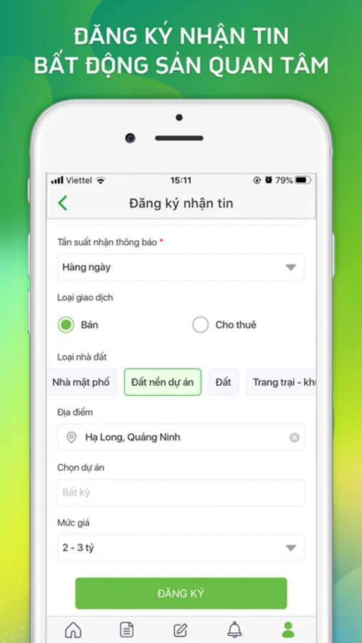 - Đăng ký nhận thông báo về bất động sản quan tâm