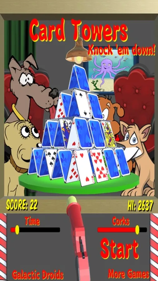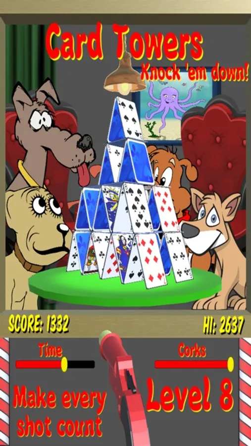 There are lots of different levels, and different card castles to obliterate, sometimes you are limited on the number of corks you can fire. On other levels there maybe a time limit so you'll need to shoot fast.