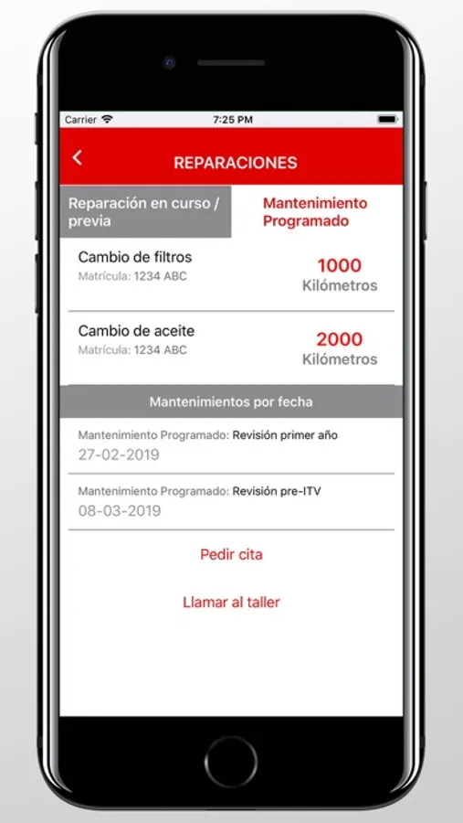 - recibir notificaciones o recordatorios avisándole de cuándo tiene que realizar mantenimientos a su vehículo; según fechas o según kilómetros recorridos.