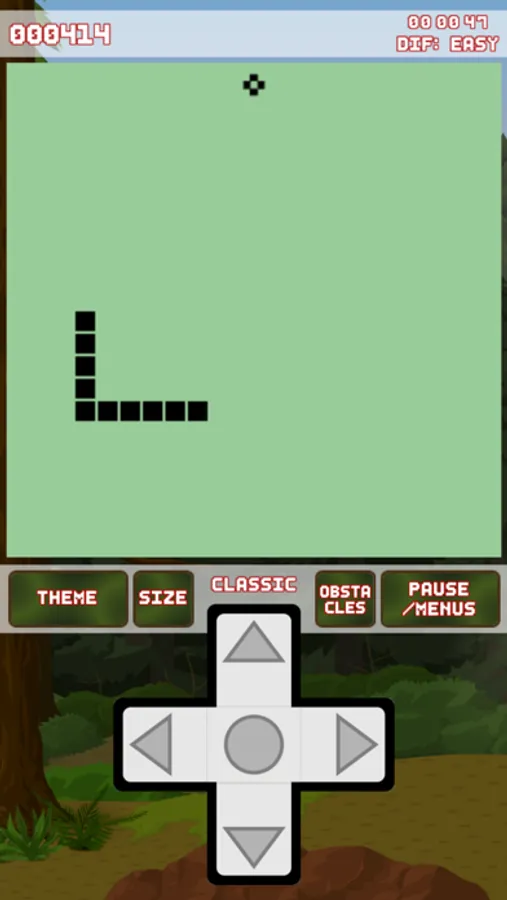 The player controls the snake (which is either a dot, square or object - depending on the theme) on a bordered plane. The player attempts to eat items by running into them with the head of the snake. Each item eaten adds points to player's score and it makes the snake longer, so controlling is progressively more difficult. The player loses when the snake runs into the screen border, a trail or other obstacle or itself.