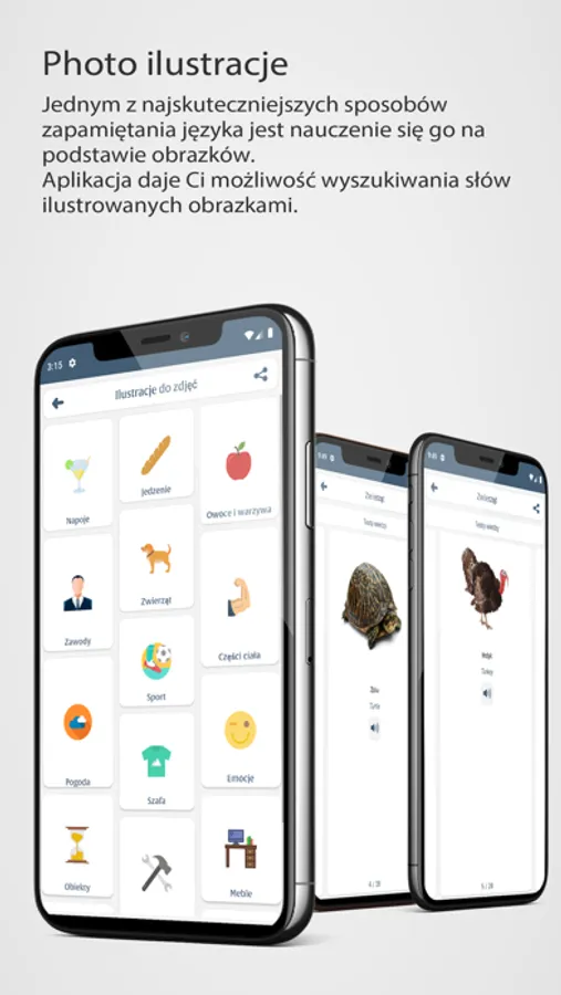 Jednym z najskuteczniejszych sposobów zapamiętania języka jest nauczenie się go na podstawie obrazków. Aplikacja daje Ci możliwość wyszukiwania słów ilustrowanych obrazkami.