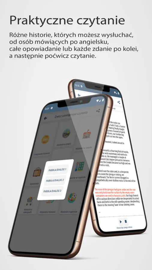 Różne historie, których możesz wysłuchać, od osób mówiących po angielsku, całe opowiadanie lub każde zdanie po kolei, a następnie poćwicz czytanie.