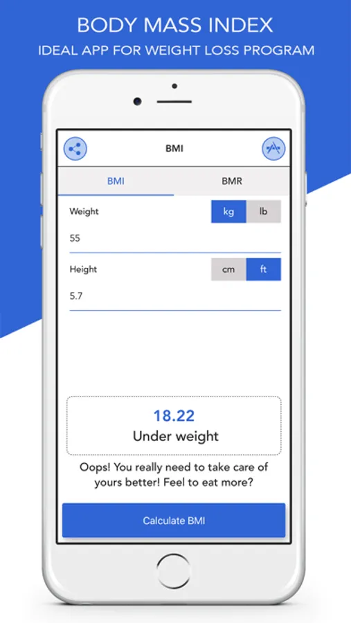 BMI Calculator - Weight Loss & BMR Calculator is the app which allows user to calculate their Body Mass Index and BMR Index in one app. It provides the accurate measurement based on the weight and height provided by user along with age.