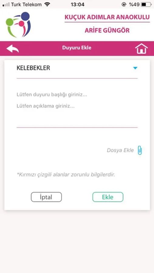 KÜÇÜK ADIMLAR ANAOKULU Veli Bilgilendirme Programı - Öğretmen Sistemi