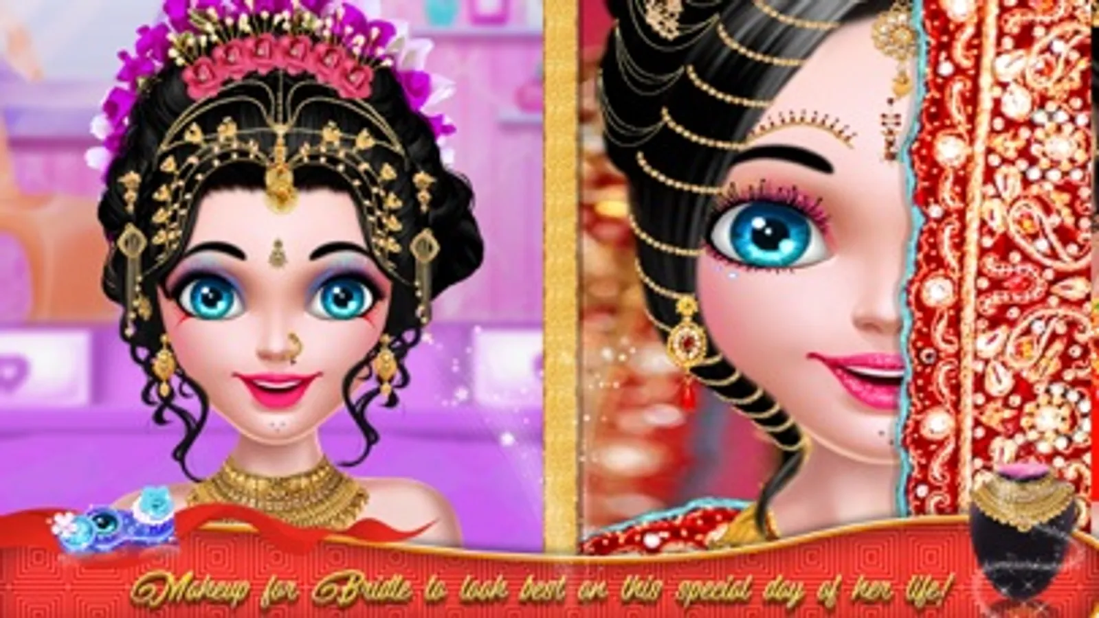 Every Girls want to look beautiful with stylist fashion on her wedding. Every Indian princess doll want to look like bride Gopi girls in her own Indian wedding games. Grand wedding of bride and groom celebrity with Indian tradition girl makeover. And every girl wants to become Indian bridle princess. In this Game, First of all, clear out her face in spa. Then help this princess girl in makeover to becoming Indian fashion stylist model and make her look gorgeous with new fashion trends in royal Indian wedding rituals and makeover. Every girl wants to look amazing in wedding. Create your own ethnic style with this exclusive rural Indian makeover which is every girl's dream. We have provided all in one wedding package like punjabi wedding, from spa, dress-up, make up to date with amazing ornaments to beautiful Indian sarees and choli as a outfits. Get ready for this theme of Indian designer bride fashion salon for wedding. Have fun playing this most religious Indian arranged marriage makeover salon game. And enjoy Indian celebrity royal wedding.