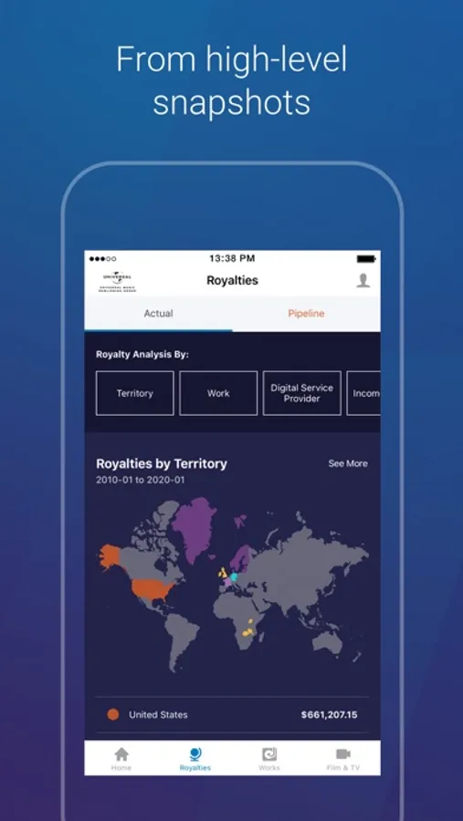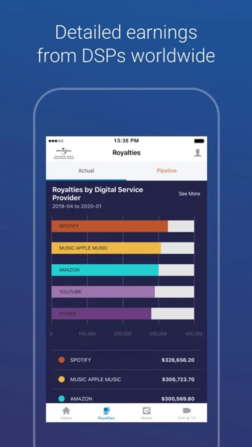 UMPG Window is the leading royalty portal for songwriters and clients. The technology provides users with clear, complete and real-time access to information and earnings – now with a download capability. An intuitive and simplified program, UMPG Window offers comprehensive views of where, when and how your music is being played and earning royalties globally.