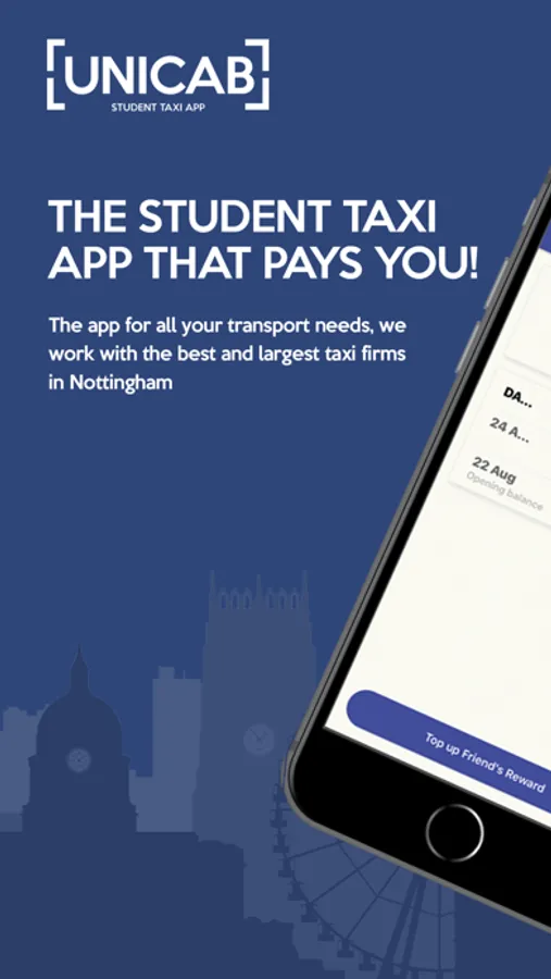 UNICAB is Nottingham’s Taxi App exclusively for Students. Like fixed fares offers and loyalty schemes? How about NO SURGE PRICING? If so UNICAB is for you. Perfect for a trip to town, Night out or just going to class. Over a 1000 Taxis available at the tap of a button. In partnership with the University of Nottingham the app also features Safer Taxi Scheme. If for any reason you haven’t got enough cash to get home, we’ve got your back.