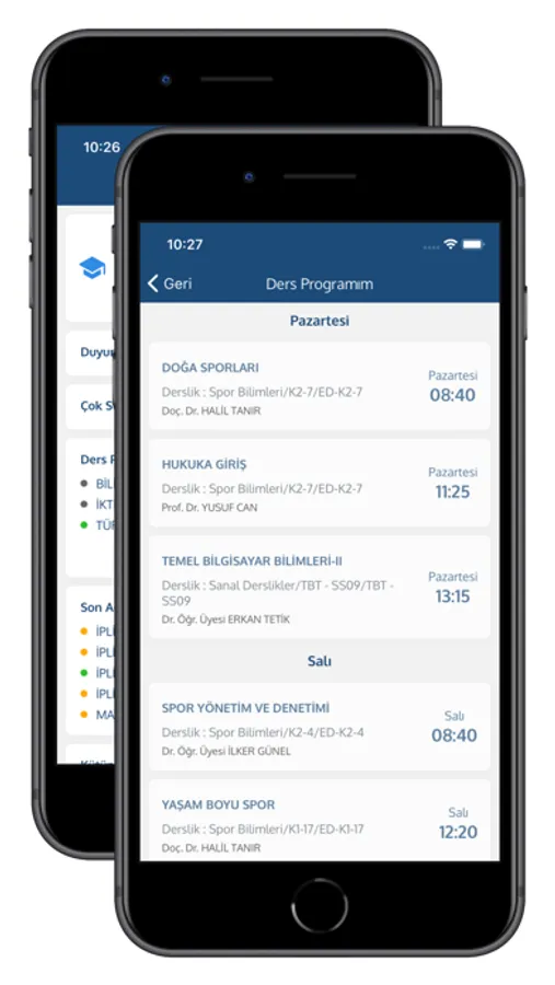 - Ders ve Sınav programı