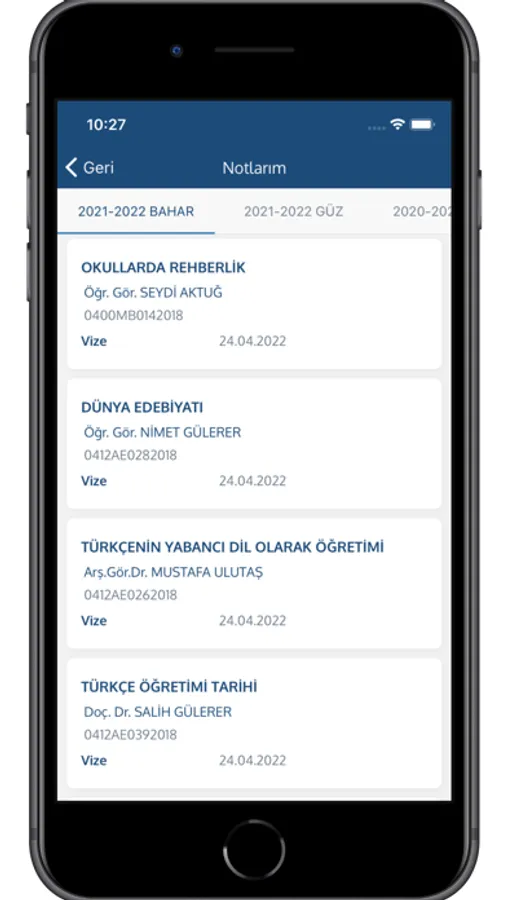 - Aktif dönem sınav notları
