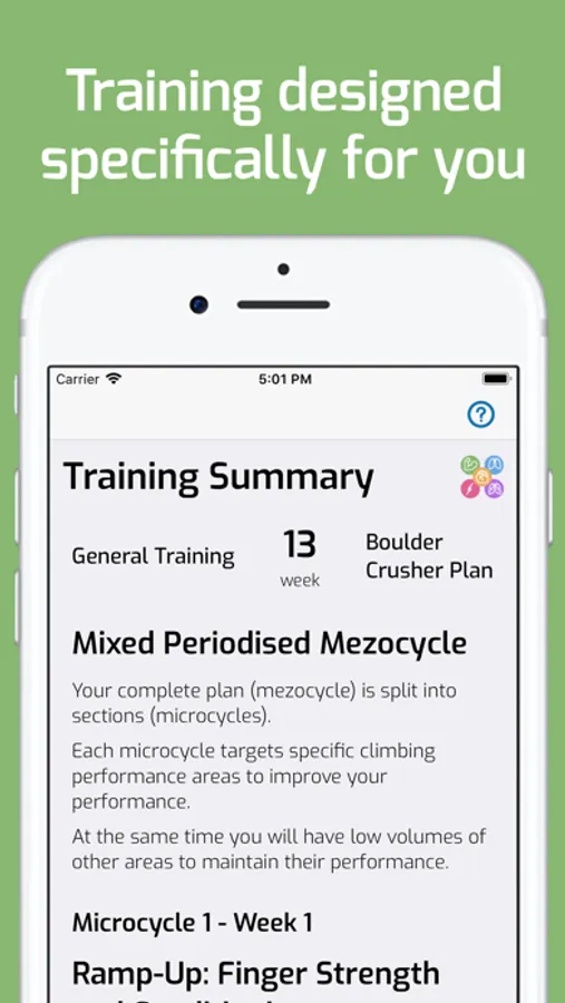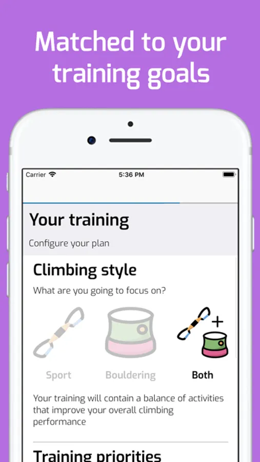 ◦ Advance your climbing using training cycles created instantly and specifically for your climbing profile