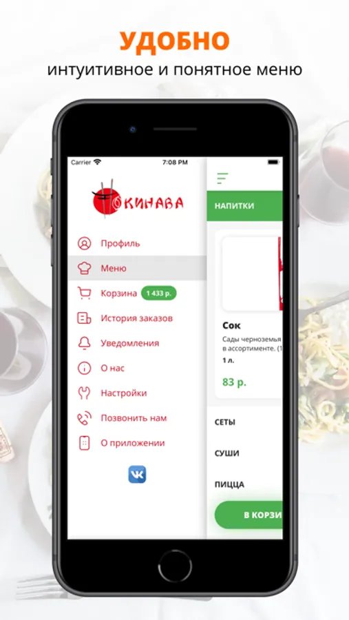 посмотреть меню и совершить онлайн-заказ;