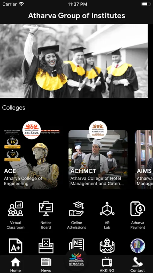 - News Feed: This is a very important tab where all the college and student related news are sent to the students.