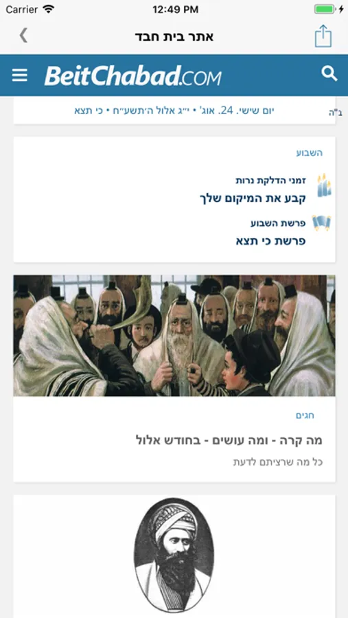 הורידו את אפליקציית אתר בית חב"ד! קיראו אלפי כתבות, צפו בסרטוני וידאו, חגי ישראל, לוח שנה, זמני הדלקת נרות ועוד!
