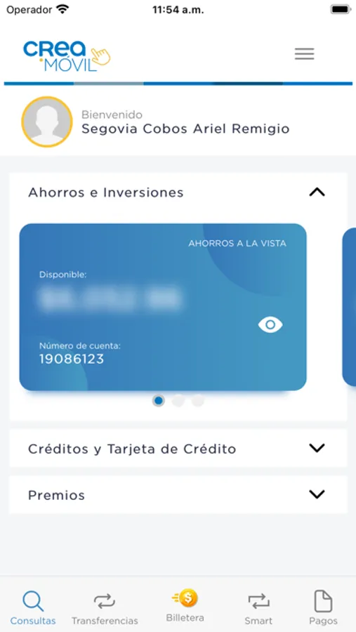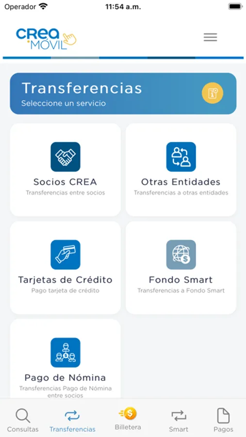 Aplicativo móvil de la Cooperativa de Ahorro y Crédito CREA para la realización de operaciones financieras.