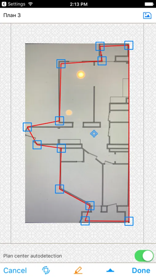 - Draw plan’s outline to calculate the center (you can mark the center manually)