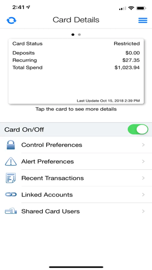 • Card On/Off Setting: When your card is turned “off”, future transactions (such as withdrawals and purchases) will be declined until you turn the card back “on”.
