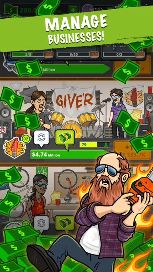 Run businesses to make money and throw the most epic parties. Make tonnes of sweet, sweet cash and Just Give’r!