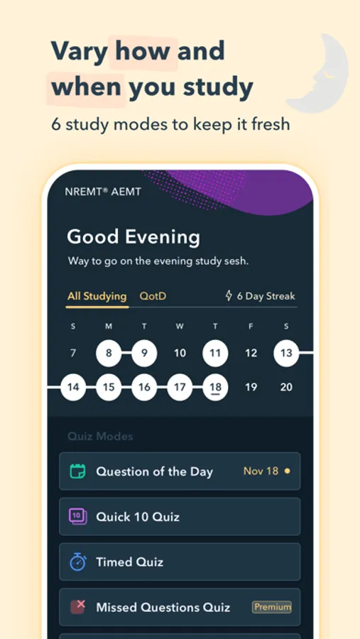 AEMT Pocket Prep gives you access to study prep for 6 different EMS exams all in one place, with hundreds of practice questions for each exam.