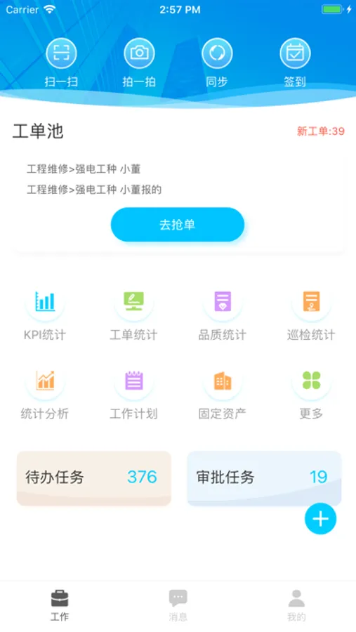 通过建立统一调度的工单池(客户工单、安保/绿化/保洁/设备维护工单、品质管理等),实现物业中工单派单、工作、管理的功能