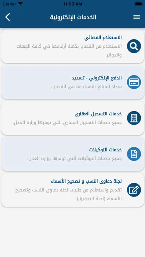 - خدمات معلوماتية توفرها وزارة العدل لمستخدمي التطبيق: