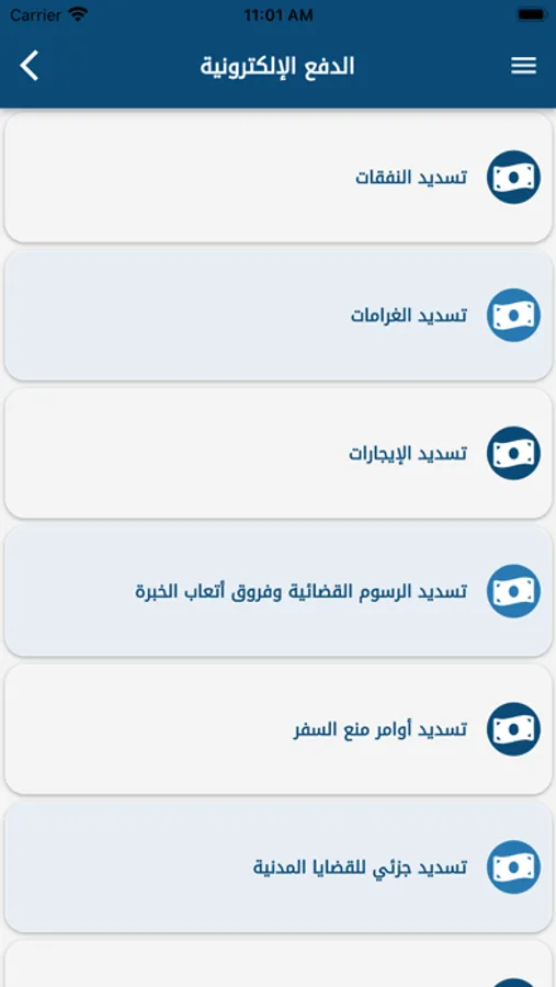 * الاستعلام وسداد المبالغ المستحقة في القضايا.