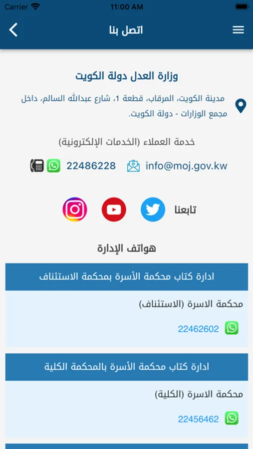 تفعيلا لمبدأ الحكومة الذكية، تقدم وزارة العدل بدولة الكويت تطبيقا مشتملا على كافة الخدمات الإلكترونية المقدمة عبر بوابة وزارة العدل الالكترونية، موفراً معلومات قيمة وخدمات لكافة المستفيدين، وفيما يلي الخدمات المقدمة للمستفيدين: