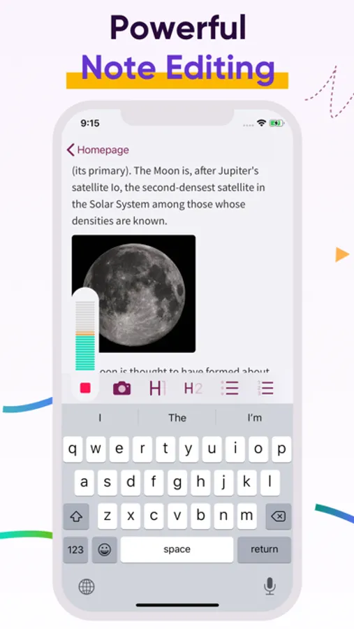 With the power of Google's speech-to-text software, you can seamlessly convert your words to notes and write in over 120 different languages!