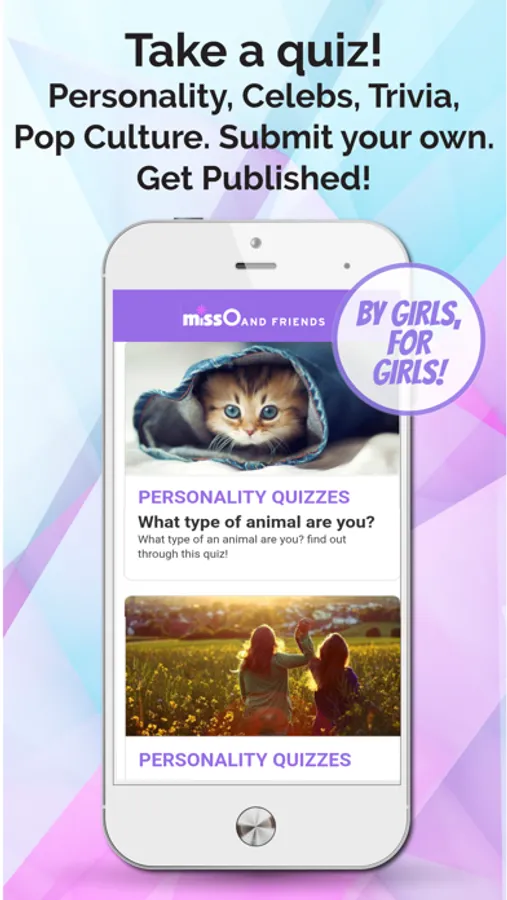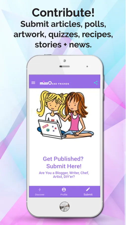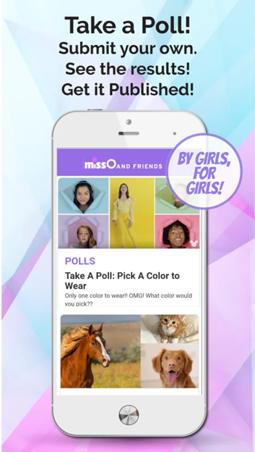 The Miss O and Friends app is a "by girls, for girls," a social, magazine-like app for girls 8-14, which allows users to safely interact with other girls by submitting their original articles, quizzes, recipes, polls, artwork, and stories, and commenting, participating and enjoying the content by our user community. It is the app version of the original missoandfriends.com, a safe socialization website by girls, for girls. This app is a positive place for young girls to interact intelligently with other girls and help to build self-esteem by getting their work published and receiving positive reinforcement from their peer community. The users connect and make friends with other girls around the world in a positive, non-judgmental way.