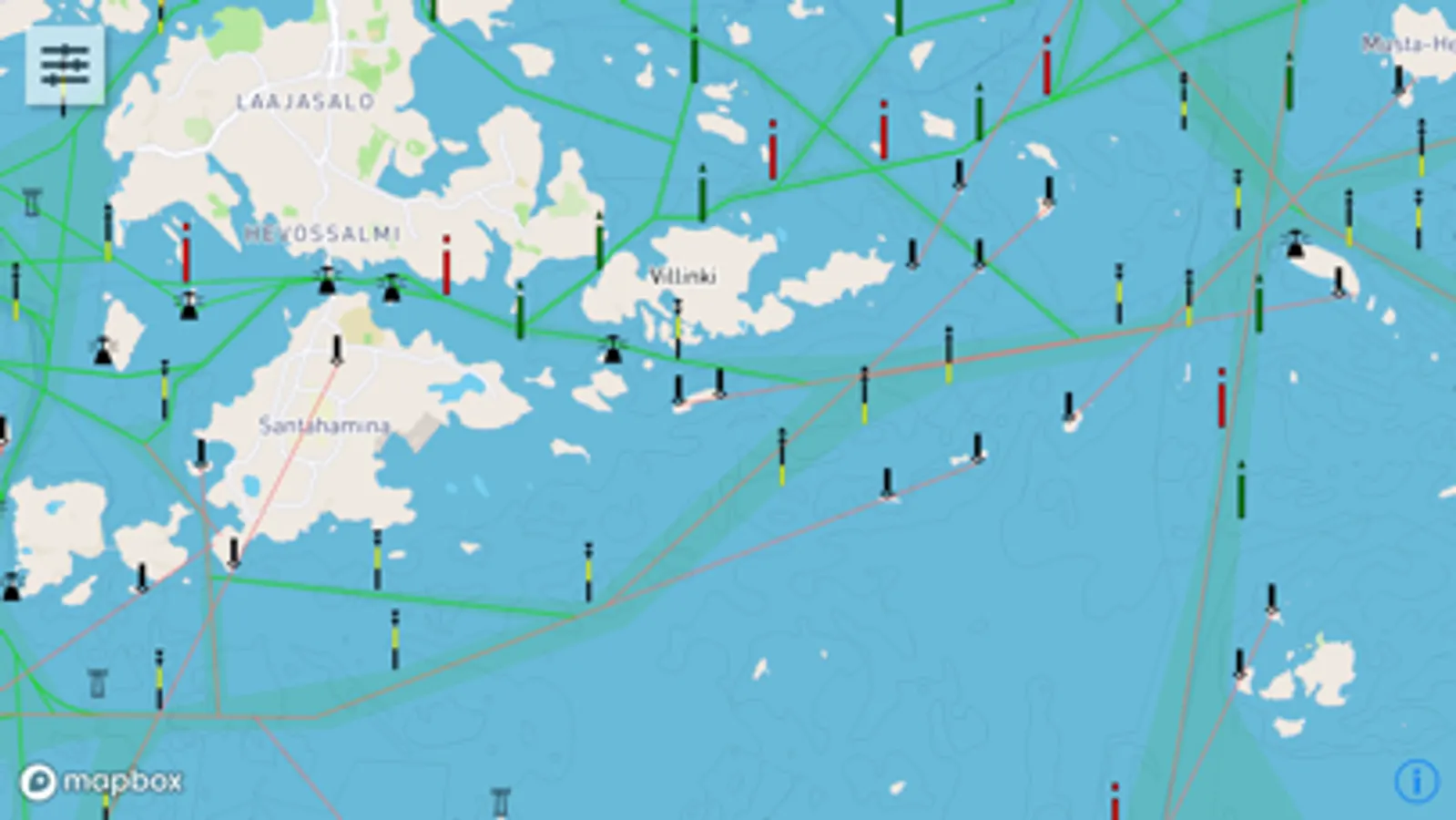 Uses navigational markers from Finnish Transport Agency and public vessel identification data.