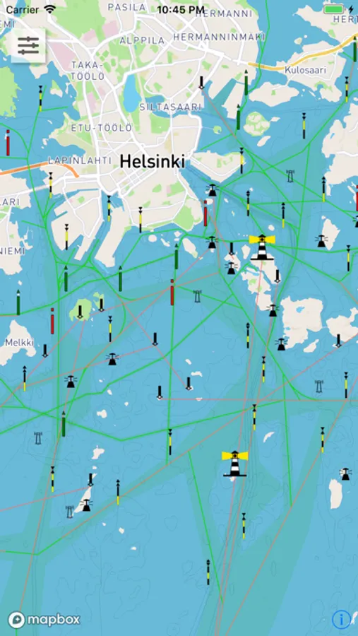 Includes live tracking of vessels in Finnish waters. Tap on a vessel icon to view further information.