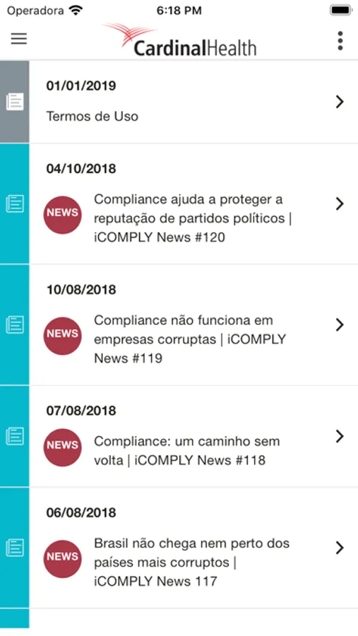 Aplicativo voltado a interessados no tema de Compliance da Cardinal Health.