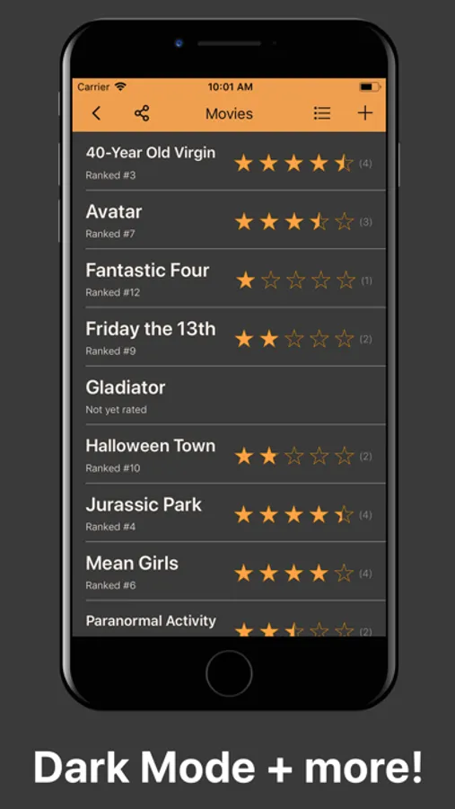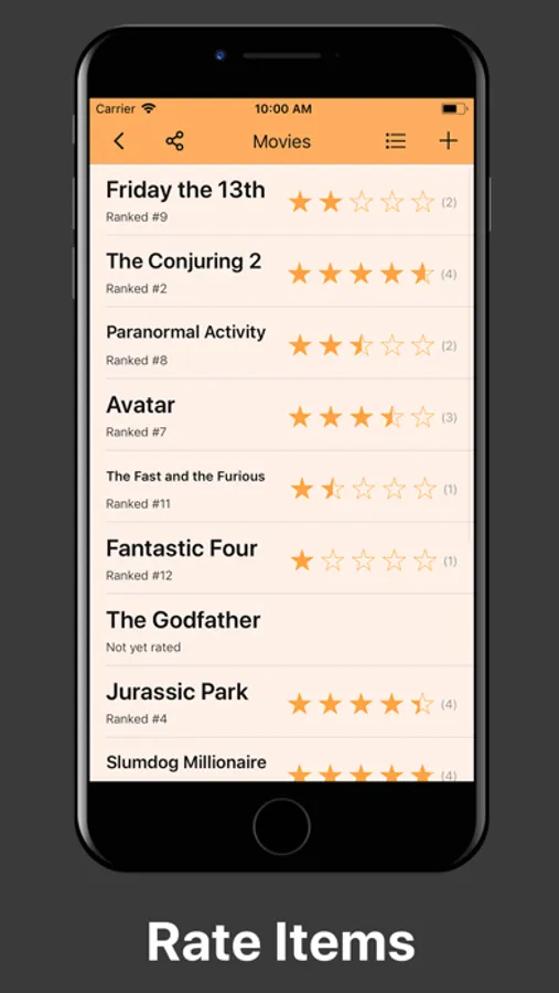 Share your lists with friends to rate things together.