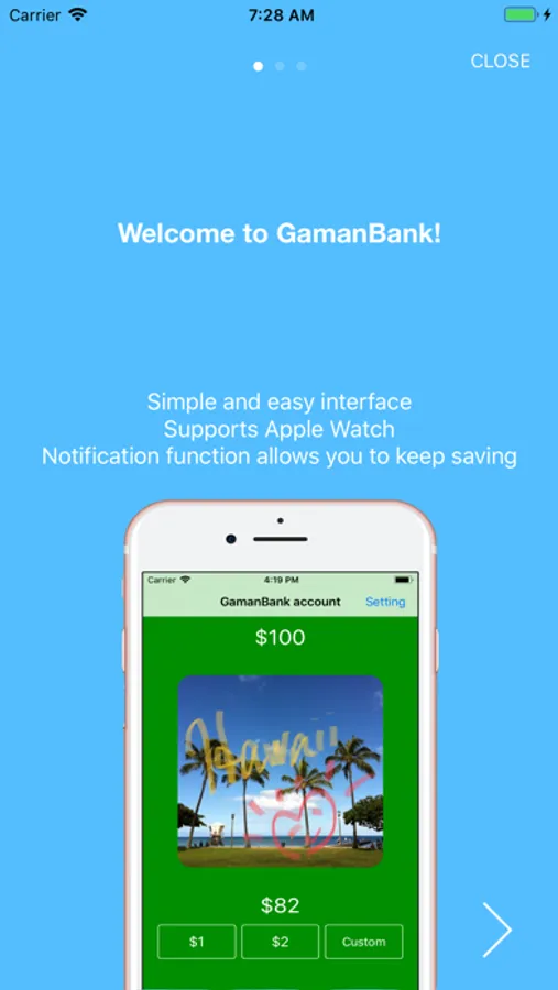 Note 7: GamanBank is a simple app. I don’t have an intention to upgrade it to be complicated, however, I might consider to add more functions when I update the app, such as color theme setting for the app or adding more animation you can see when you achieve your goal.