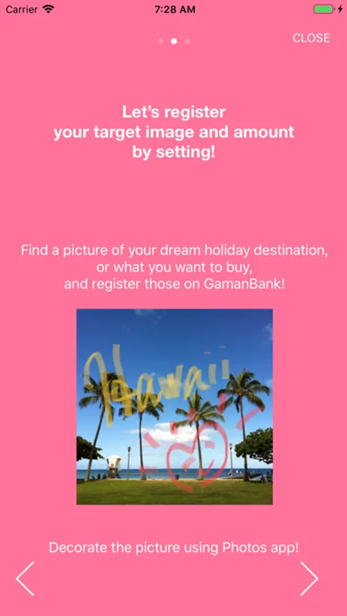 Now, let’s put pictures and costs of your wish list, your dream holiday destination, and such in the app. It’s probably better not to register extremely expensive things. I recommend you to choose something you’re not 100% sure if you really want… You know it’s quite refreshing to spend on things like that as a reward of your patience!
