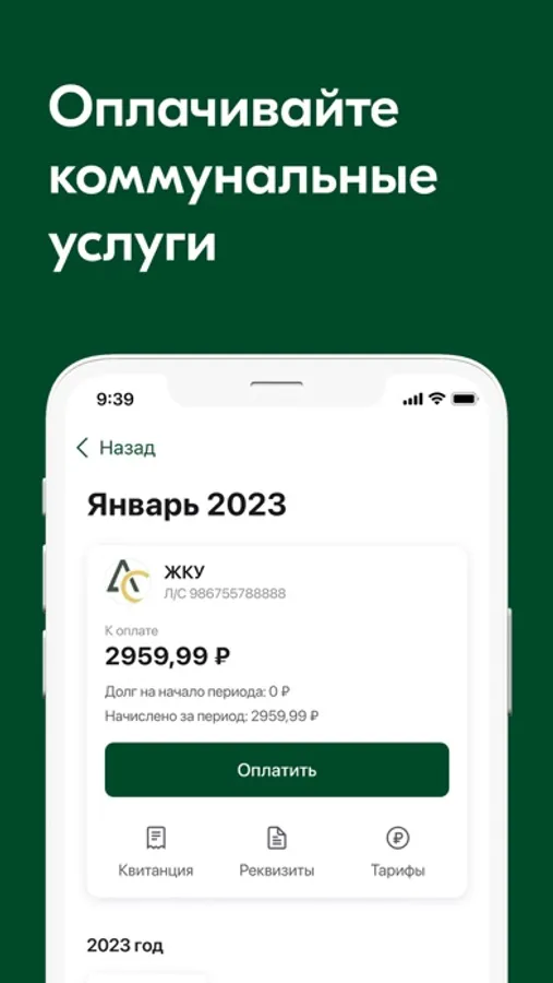- Просматривать детализированную квитанцию и историю платежей;