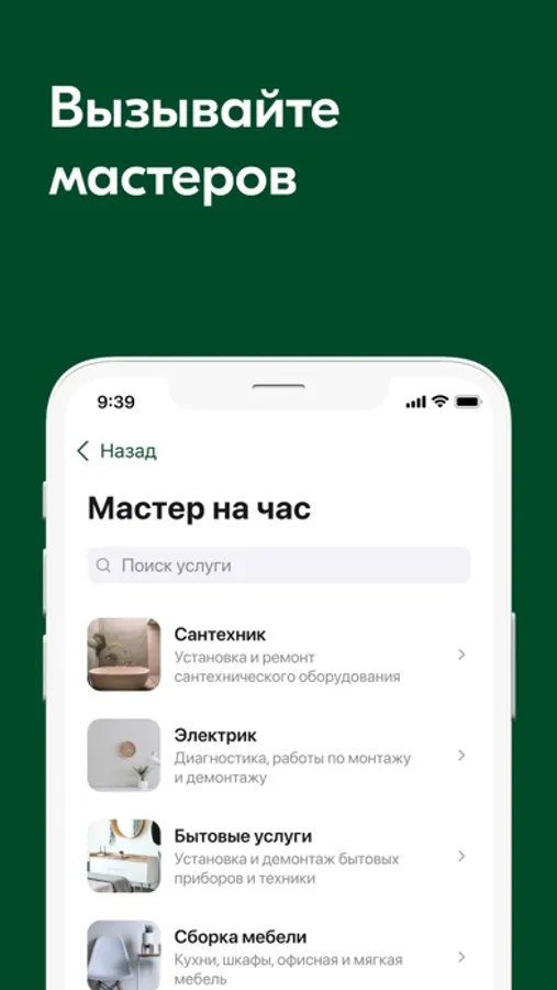 - Вызывать мастера, следить за статусом заявки, общаться в чате и оценивать качество работы;