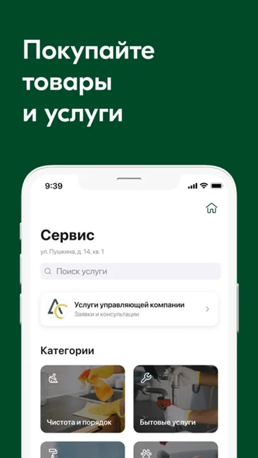 - Заказывать товары и услуги: воду, цветы, ремонт окон и др.