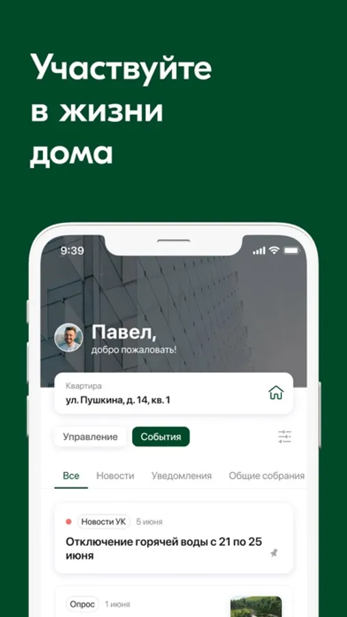 Отправлять заявки, оплачивать счета, принимать участие в опросах и общих собраниях, получать важные уведомления — теперь удобней.