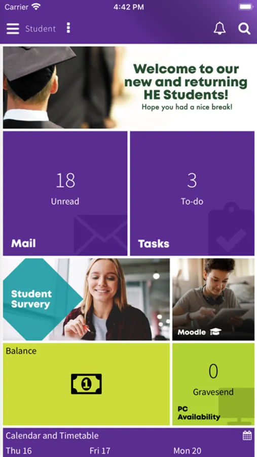 • Your Timetables, so you can see where you need to be and when, as well as notifications if anything changes.